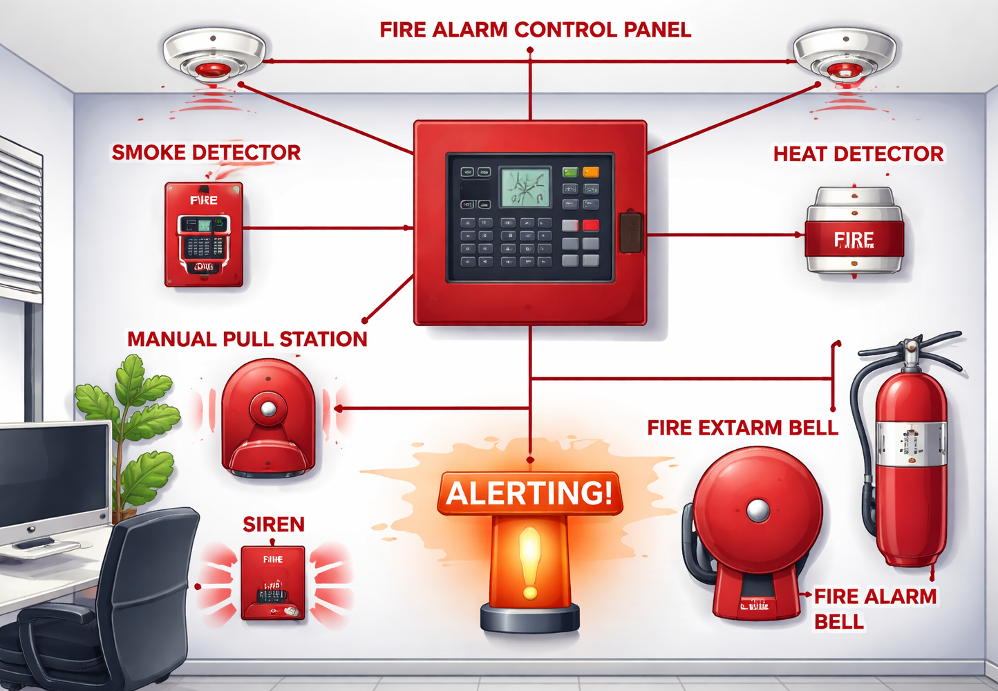 A fire extinguisher is a portable safety device used to control or extinguish small fires in emergency situations. It is designed to protect life, property, and valuable assets by providing quick fire response before the fire spreads.
